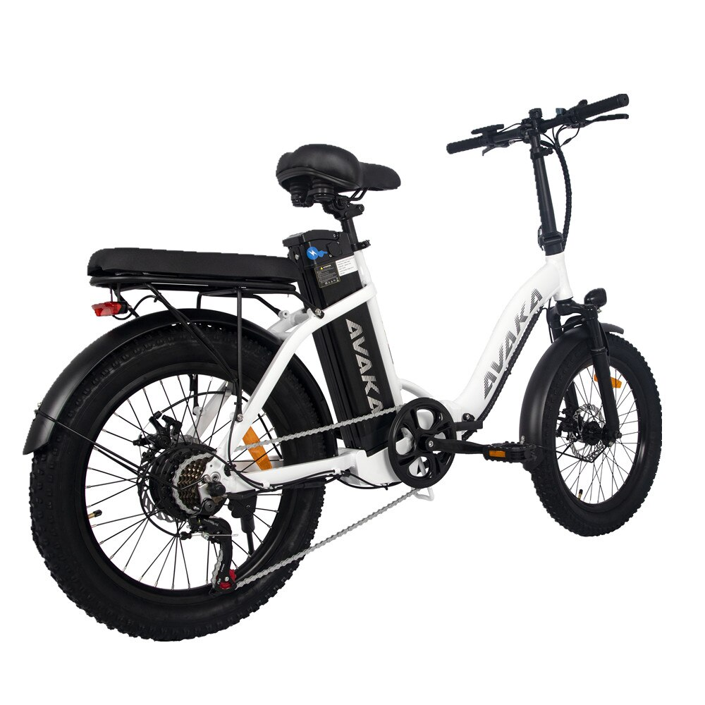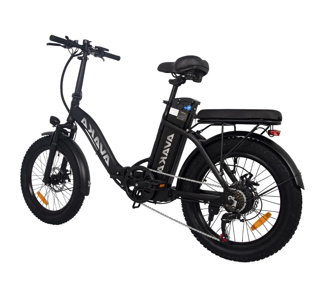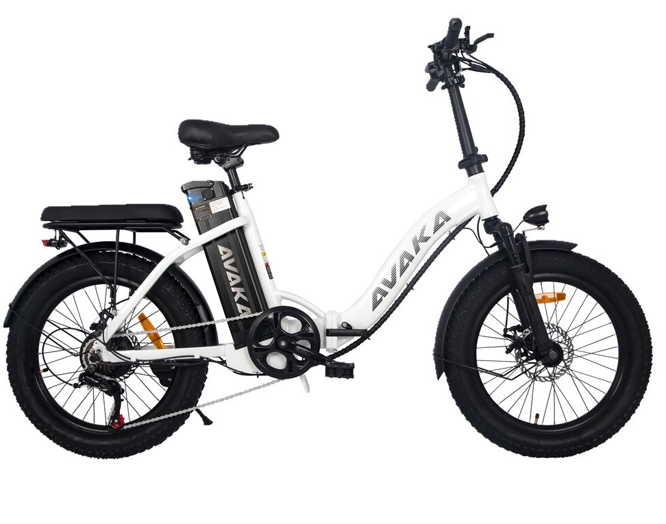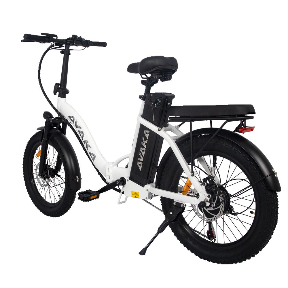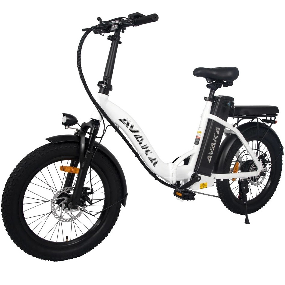Bicicleta Electrica AVAKA BZ20 PLUS, Motor 500W, Autonomie 100 KM, Viteza maxima 32 KM/H, Acumulator 48V 15AH li-ion Detasabil, Pliabila, Roti FAT 20*3.0 inch, Step-Through, Negru/Alb