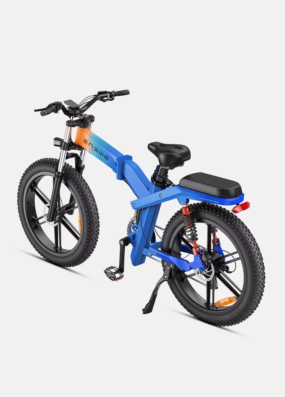 Bicicleta Electrica ENGWE X26 de munte, Motor 1200W, Autonomie 150 km, Viteza maxima 50 km/h, Acumulator 48V 29.2AH li-ion Detasabil, Roti FAT 26*4.0 inch din Aliaj, Pliabila, Full Suspension, Gri/Negru/Albastru Editie Limitata