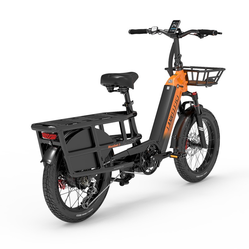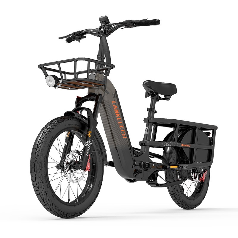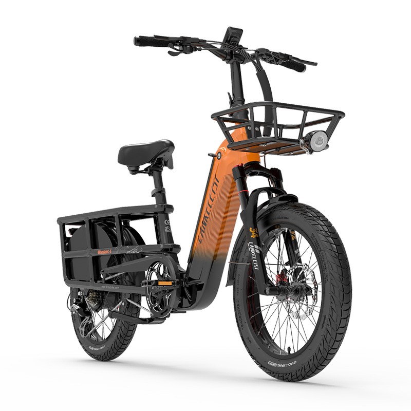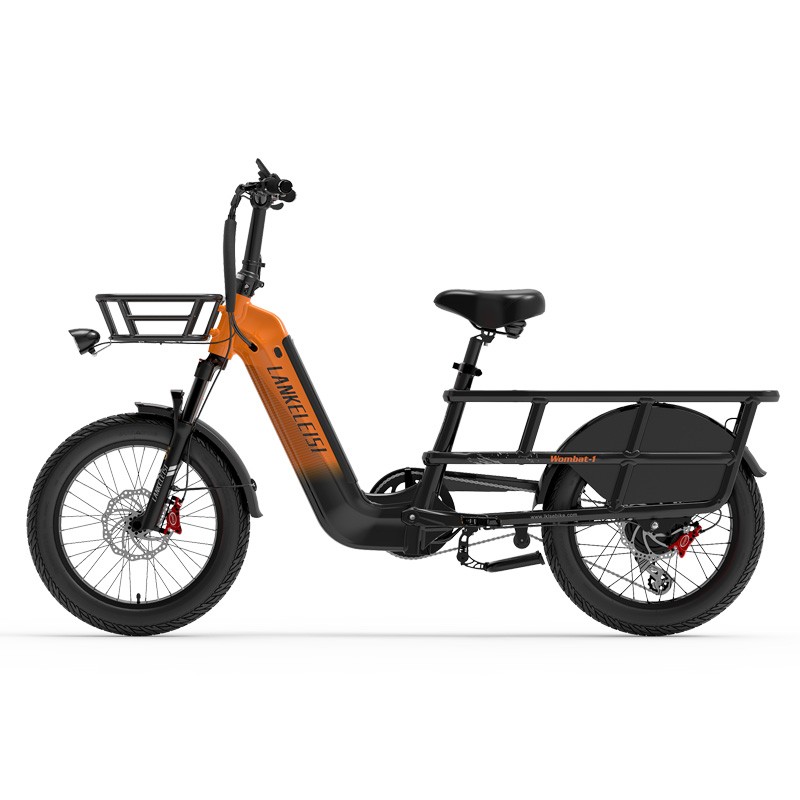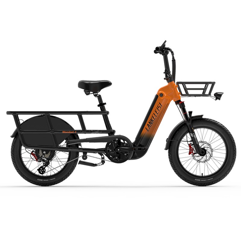 Bicicleta Electrica LANKELEISI Wombat-1 de munte, Motor 1000W, Autonomie 150 KM, Viteza maxima 46 KM/H, Acumulator 48V 20AH SAMSUNG li-ion Detasabil, Roti FAT 20*3.0 inch, Negru+Portocaliu/Negru+Gri