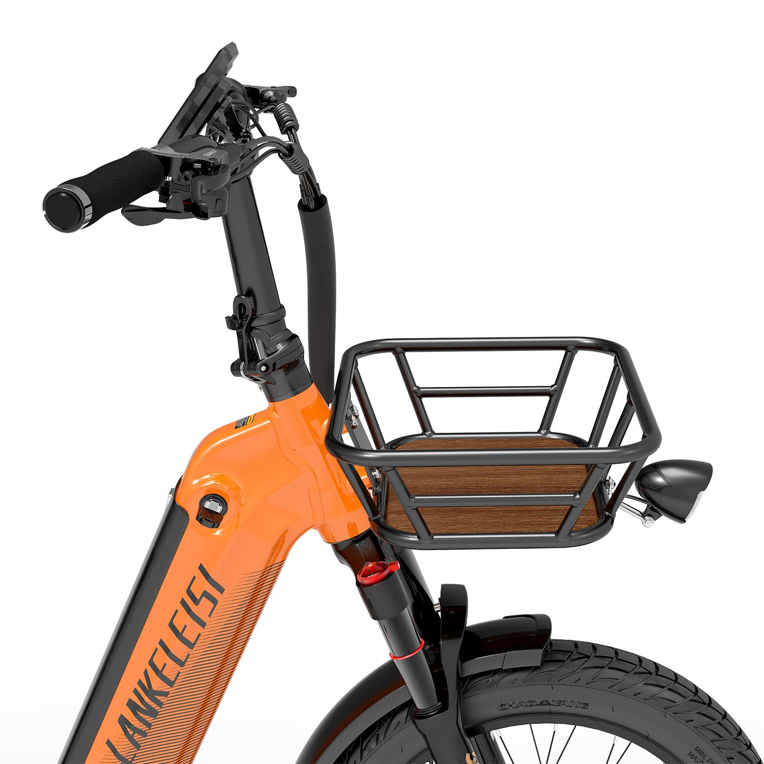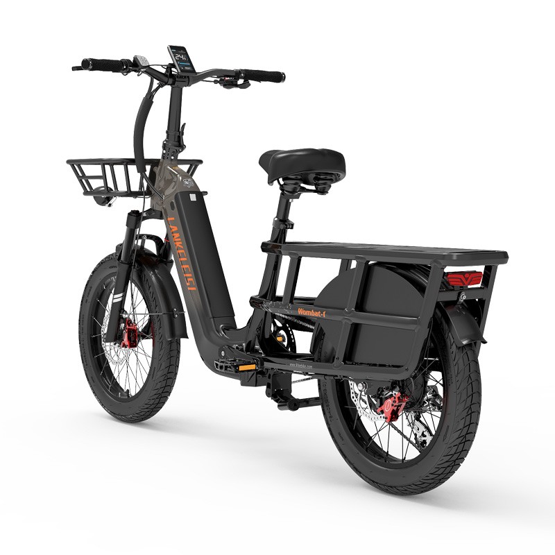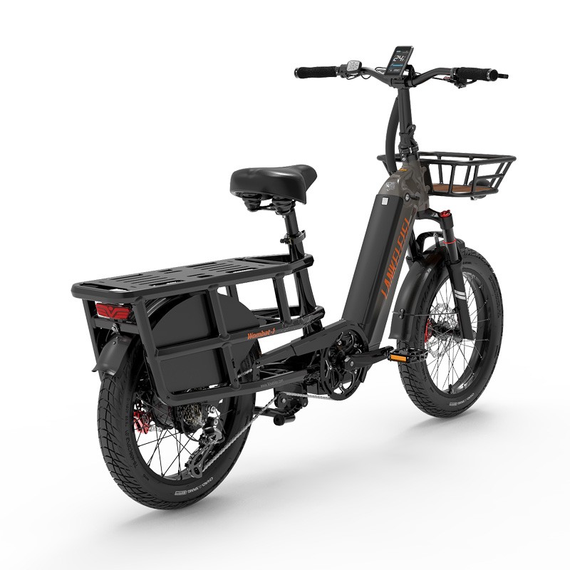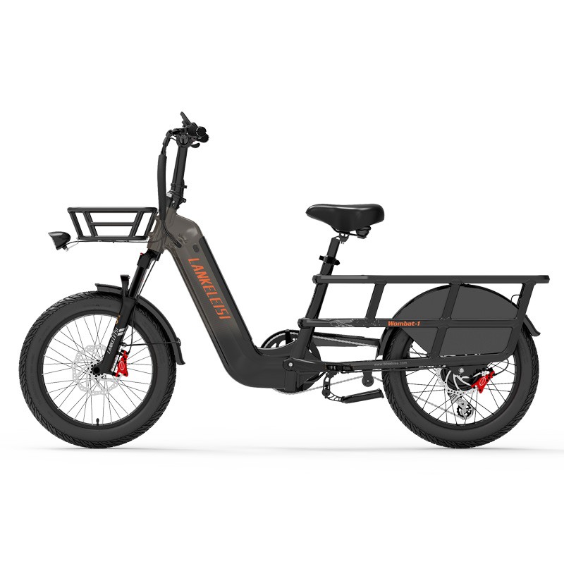 Bicicleta Electrica LANKELEISI Wombat-1 de munte, Motor 1000W, Autonomie 150 KM, Viteza maxima 46 KM/H, Acumulator 48V 20AH SAMSUNG li-ion Detasabil, Roti FAT 20*3.0 inch, Negru+Portocaliu/Negru+Gri
