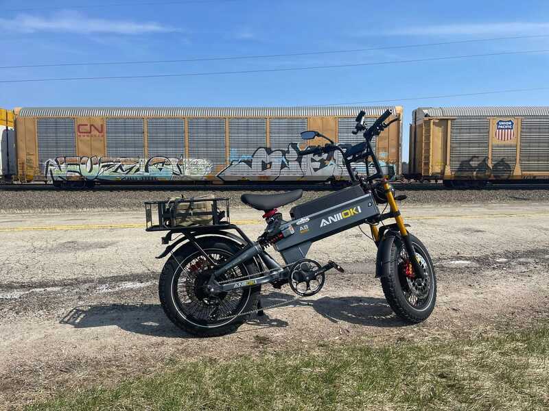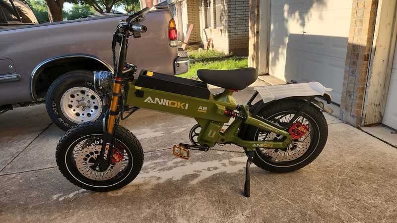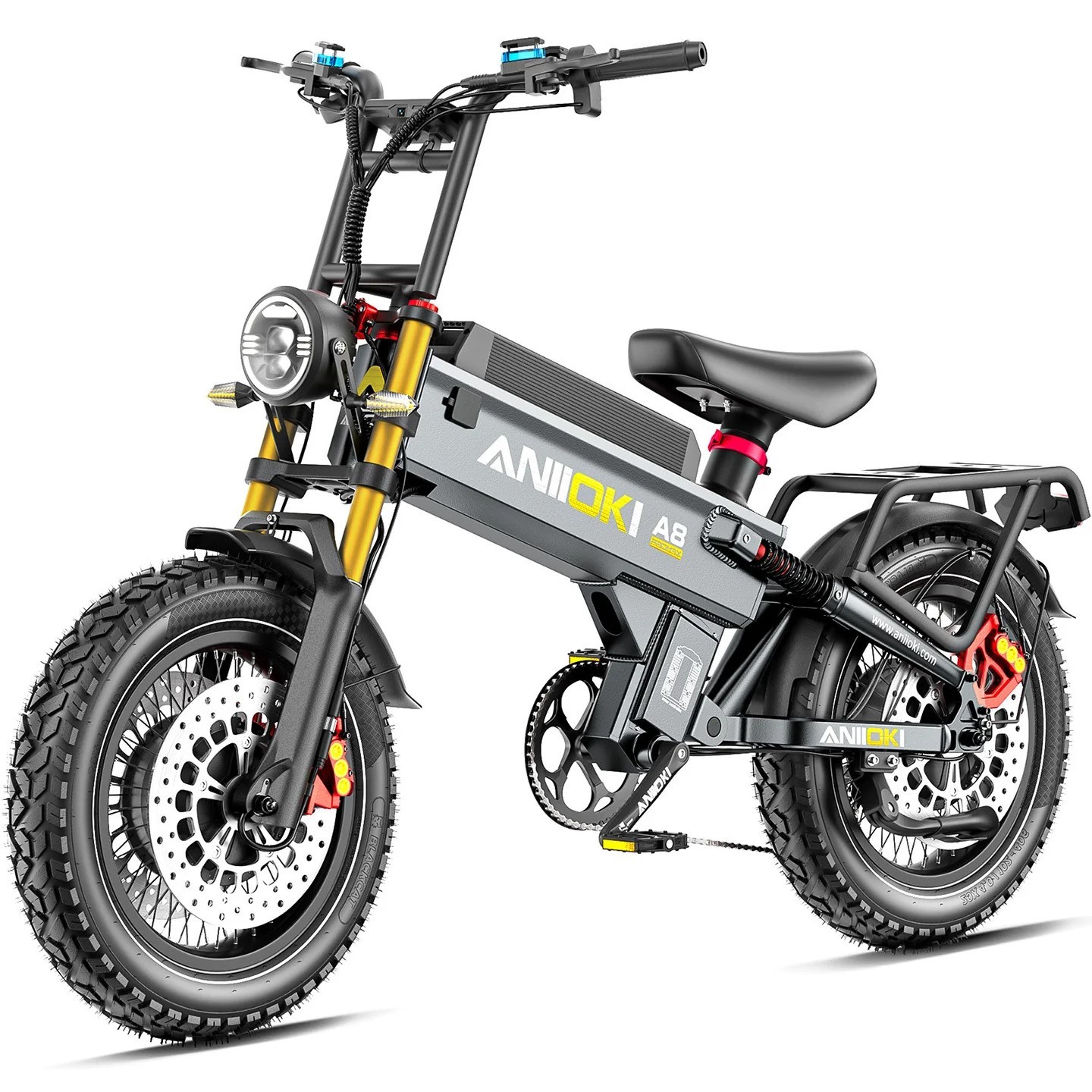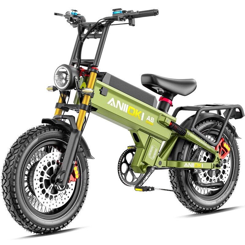 Momentan revizuiti: Bicicleta Electrica ANIIOKI A8 PRO MAX , 54000W, Motor DUAL, Autonomie 400 km, Viteza Maxima 75 km/h, Acumulator 60V 80AH Li-ion Semi-Solid State cu 3000 Cicluri Detasabil, Roti FAT 20*4.0 inch, Full Suspension, Verde/Negru/Gri