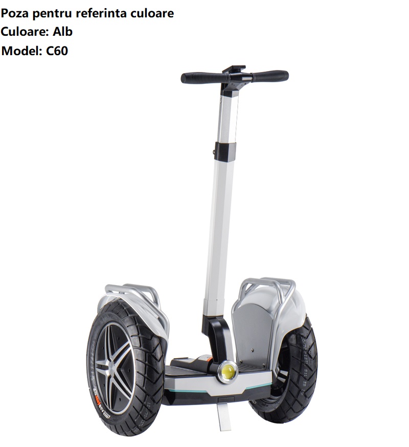 Biciclu Electric X60+ tip Segway, 3000 W, Motor DUAL, Autonomie 70 km, Viteza maxima 20 km/h, Acumulator 57.6 V 15.6 Ah Li-ion, Roti 19*7.0 inch, Bluetooth App, Alb/Argintiu/Gri/Negru