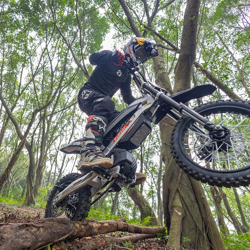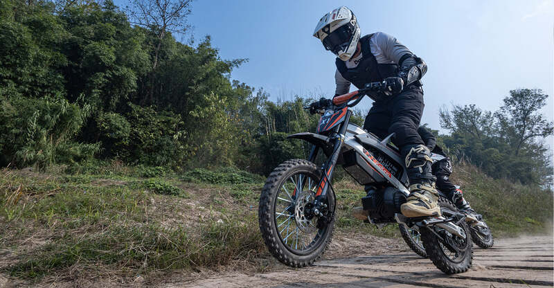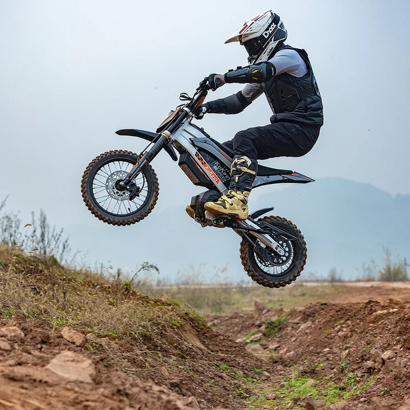 Bicicleta Electrica BONENG G17215K de munte, Motor 15 kW, Autonomie 130 km, Viteza maxima 145 km/h, Acumulator 72 V 70 Ah Li-ion, Full Suspension, Motocross Electric, Negru+Alb