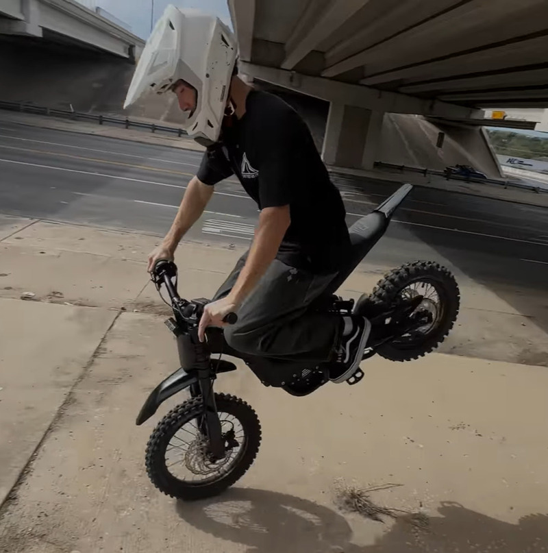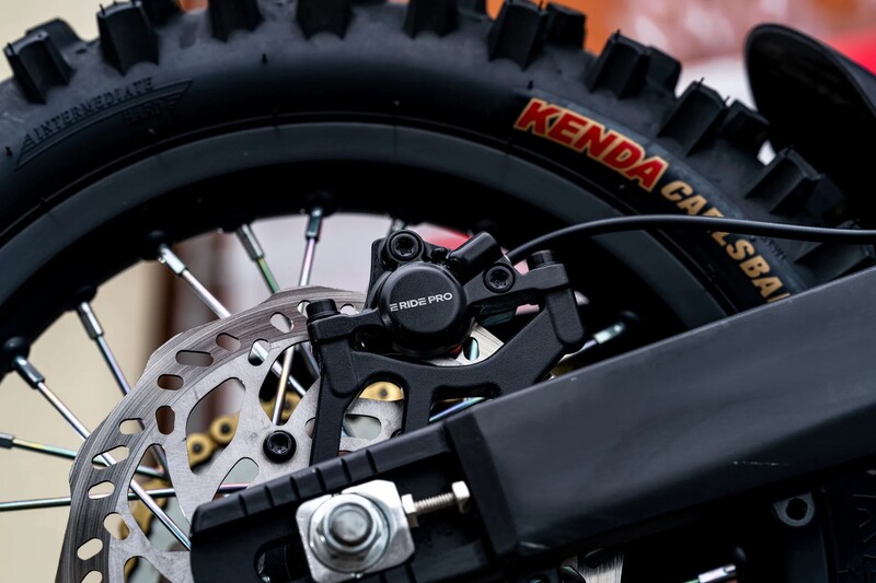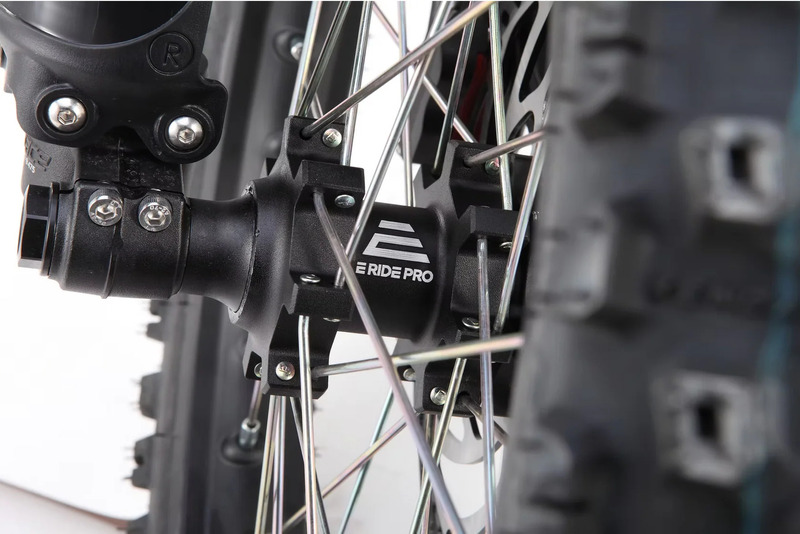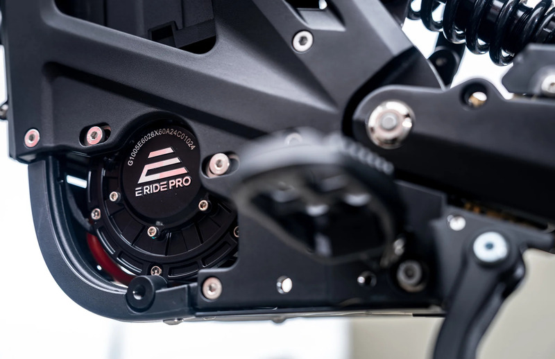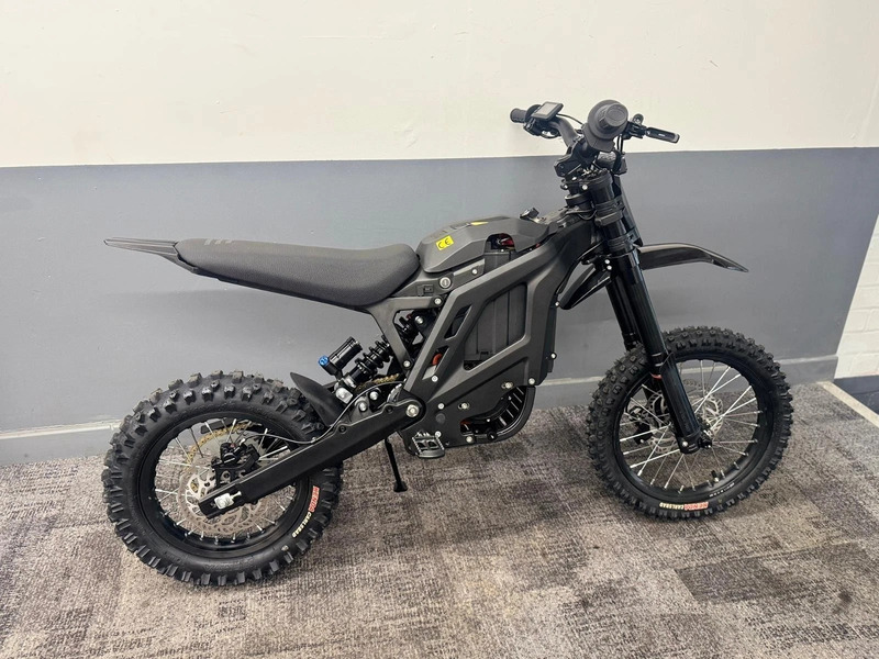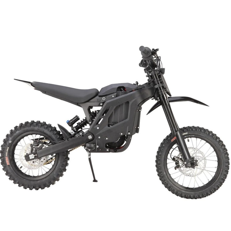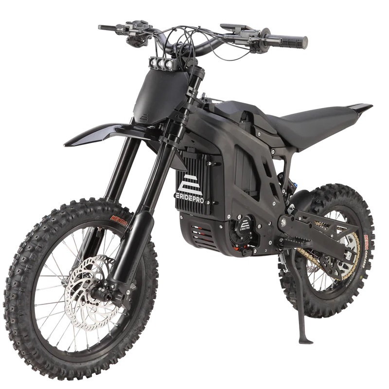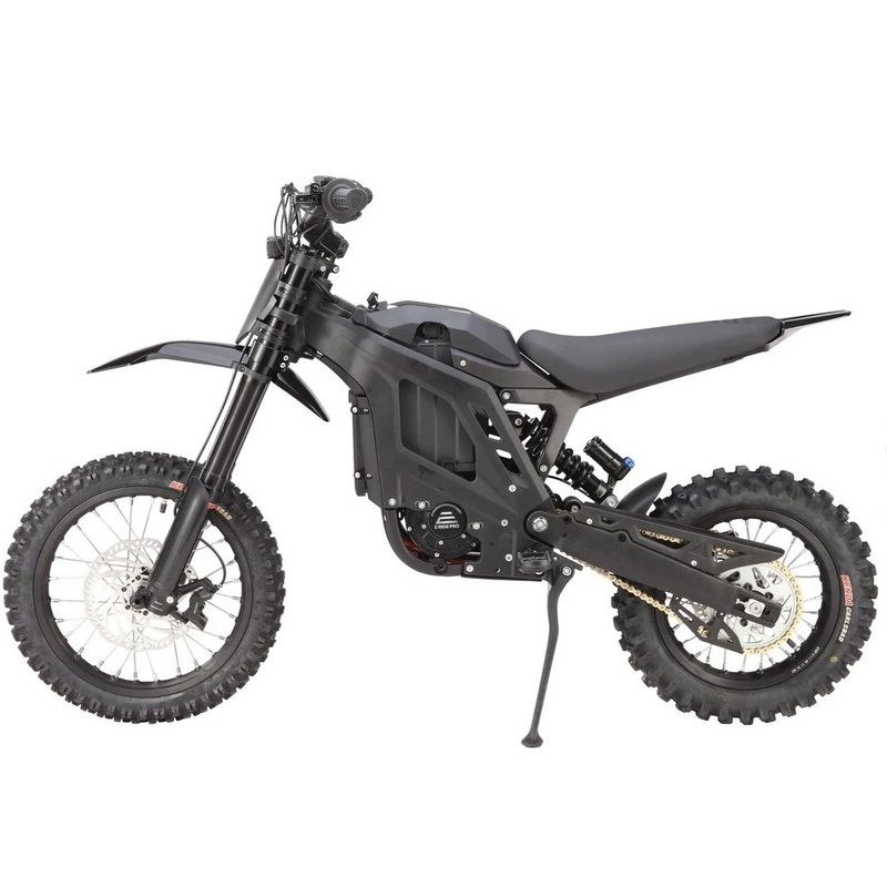 Momentan revizuiti: Pitbike Electric E RIDE PRO MINI off-road, Motor 6.000 W, Viteza maxima 75 km//h, Autonomie 130 km, Acumulator 60 V 30 Ah Li-ion Detasabil, Roti 12 inch, Full Suspension, Motocross Electric, Negru