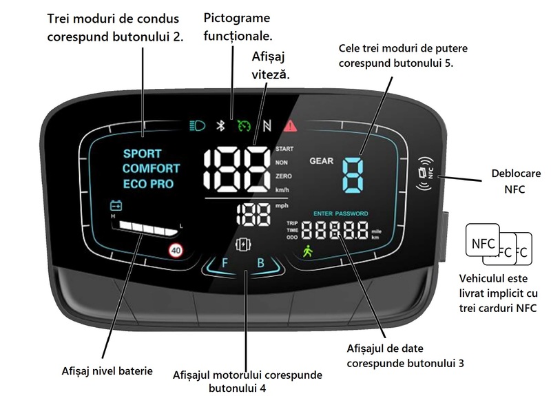 **Autonomia este influentata de viteza de deplasare, greutatea pasagerului, gradul de inclinare al drumului, temperatura mediului inconjurator si vant.